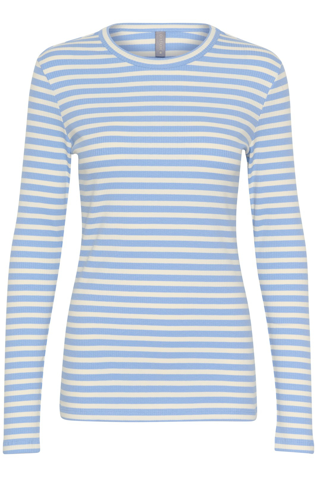 Skønneste bløde T-shirt med striber fra Culture. T-shirten er i en lækker rib kvalitet med lange ærmer og en rund halsudskæring.