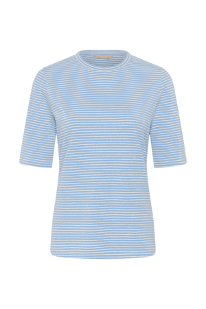 Blød basic T-shirt med korte ærmer fra Culture. Den er lækker stretchy i kvaliteteten og har en fin lurex tråd i stiben. Flot rund halsudskæring. Er kommet i 3 skønne farver.
