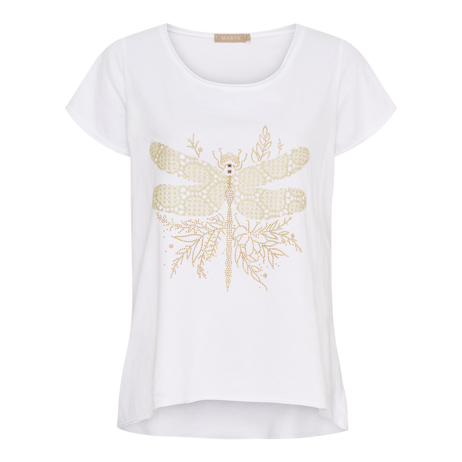 Skøn Marta T- shirt med en fin guldsmed på fronten. T-shirten har korte ærmer med afrevne kanter og et rå udtryk.