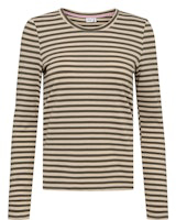 Fineste langærmet bluse fra Nümph. Blusen er med enten en grøn eller lilla og guld glitter farvede striber. Den har en tætsiddende facon og er god at bruge under kjler, skjorte osv.