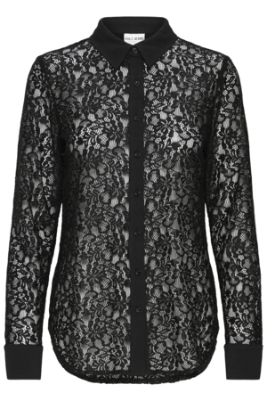 Smuk blonde skjorte fra Pulz Jeans. Skjorten har en blød bomuldskrave, manchet og piping som står flot til de feminine blonder.