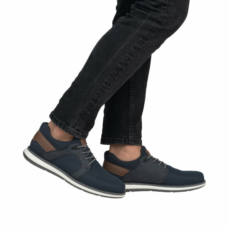 Rieker sneakers til herre i blå. Disse moderne sneakers i mørkeblå er designet med smarte detaljer, der tilfører et stilfuldt touch. Den elastiske front gør det hurtigt og nemt at tage skoene på, mens den bløde, udtagelige indersål sikrer høj komfort og støtte gennem hele dagen. Ydersålen er udstyret med stødabsorberende funktioner og et skridsikkert mønster, der giver dig et stabilt og behageligt fodfæste.