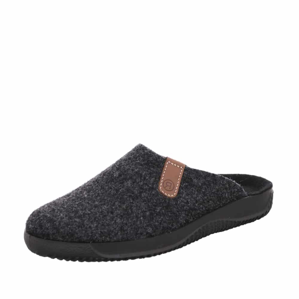 Pæn hjemmesko fra Rohde til herre. Den er i en flot moccafarvet filt. Indvendigt er den foret med filt og har en blød dæksål i ruskind med svangstøtte.