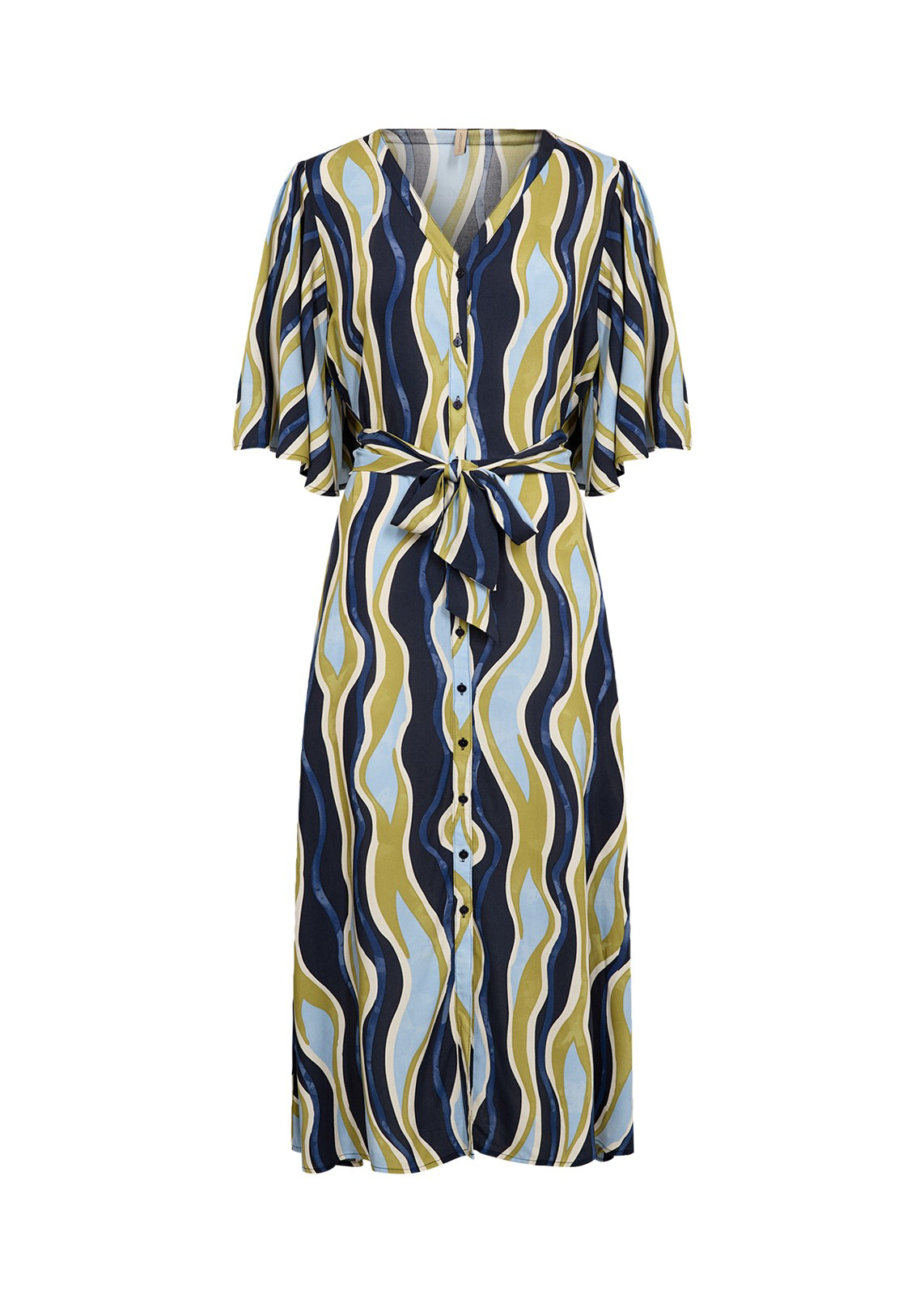 Kjole i afslappet pasform, perfekt til både hverdag og festlige lejligheder. Kjolen har midi længde og elegante 3/4 ærmer. Fremstillet af 100% viskose, der giver en behagelig og holdbar kvalitet.